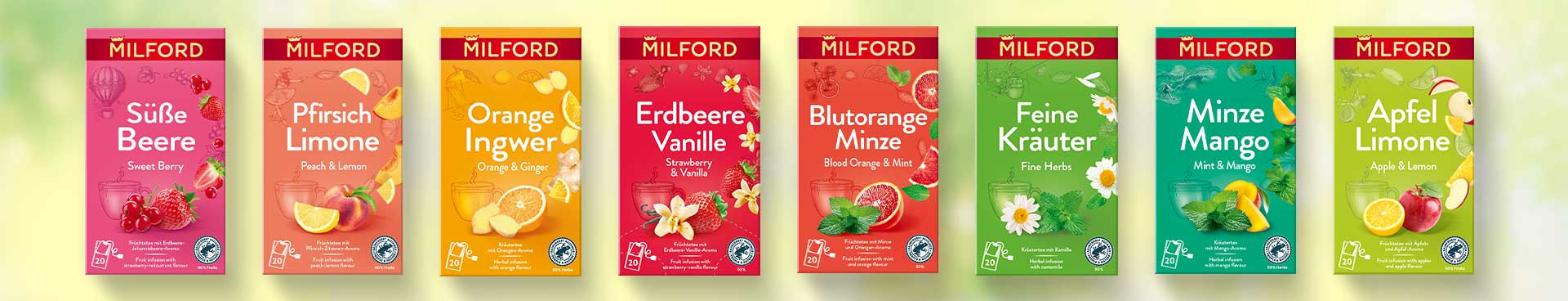 Taste Happiness! Mit Tees, die gute Laune machen. Mache jeden Tag zu einem besonderen mit den neuen Heißtees von MILFORD.