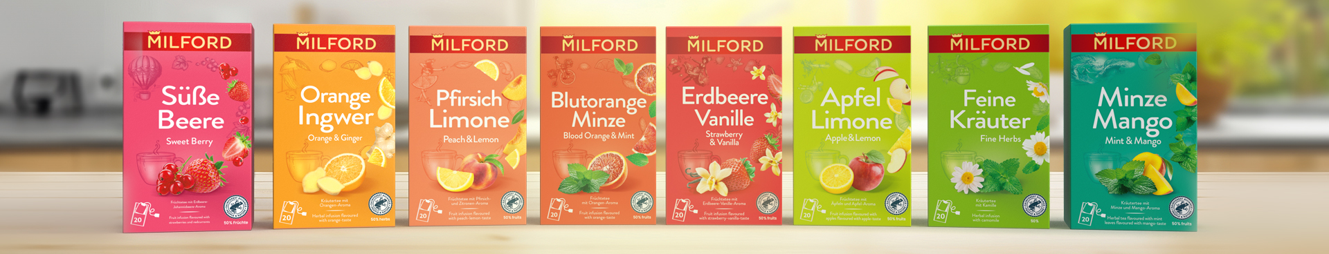 Taste Happiness! Mit Tees, die gute Laune machen. Mache jeden Tag zu einem besonderen mit den neuen Heißtees von MILFORD.